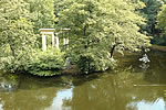 klassizistischen Pavillons mit der Plastik ein. Durch das