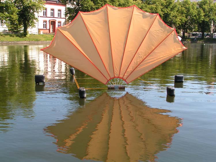 Sieben verankerte Plattformen mit je einem Fächerpaar, Einzelfächer ca. 2 x 4 Meter.