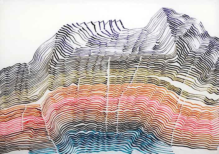 Horizont 2, 26 x 36 cm, Tusche auf Folie, 2021