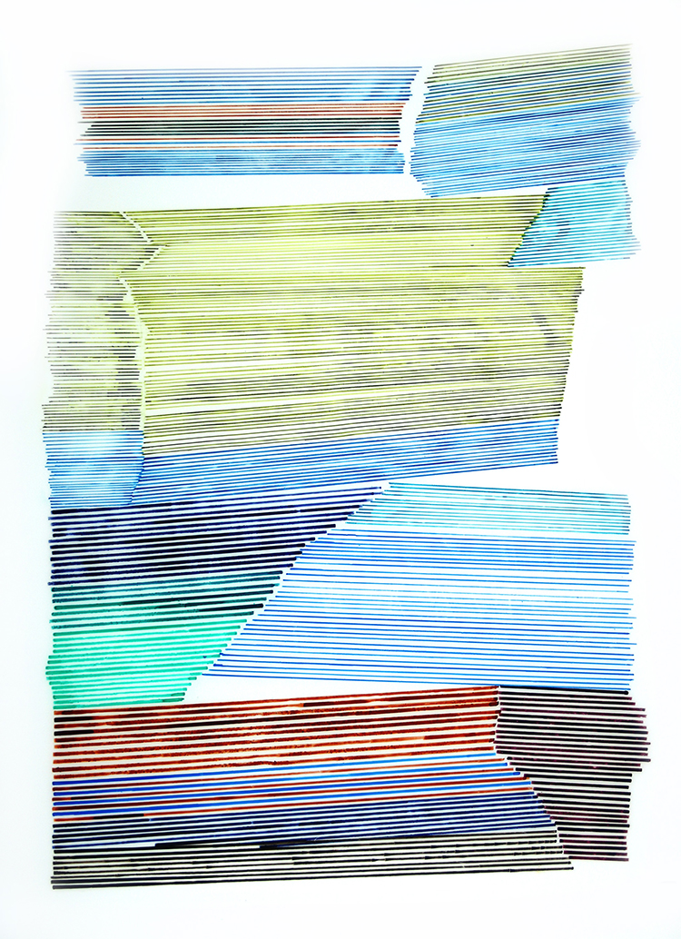 Schichtung I, 38 x 50 cm, Tusche auf Folie, 2023